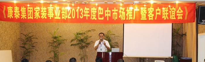 ??? 16日下午,“康泰集團(tuán)家裝事業(yè)部2013年度巴中市場推廣暨客戶聯(lián)誼會”在琴鶴苑召開。會議上,營銷中心總監(jiān)何朝暉向經(jīng)銷商們介紹了公司品牌營銷的戰(zhàn)略規(guī)劃。公司重視規(guī)模,通過品牌策劃拓展終端市場的各種政策與支持堅(jiān)定了商家們與康泰共同發(fā)展的信心和決心。