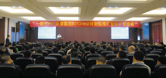??? 2013年3月30日,康泰集團2013年型材新品推廣暨客戶聯(lián)誼會在集團總部五樓多功能會議室隆重召開,本次會議意在為成都、四川、重慶的門窗組裝廠、裝飾公司及開發(fā)單位的眾位好友推薦康泰型材新品,加強經(jīng)銷商與客戶之間的相互交流學習,全面了解公司的生產(chǎn)實力、技術研發(fā)、營銷服務等相關領域,特舉辦此次盛會。本次會議以“鑄就高品質(zhì)型材,開拓互惠雙贏新局面”為方針,以提升康泰型材在客戶心目中的認知度為戰(zhàn)略目標,大家各抒己見,出謀劃策,共商康泰型材2013年的發(fā)展戰(zhàn)略。