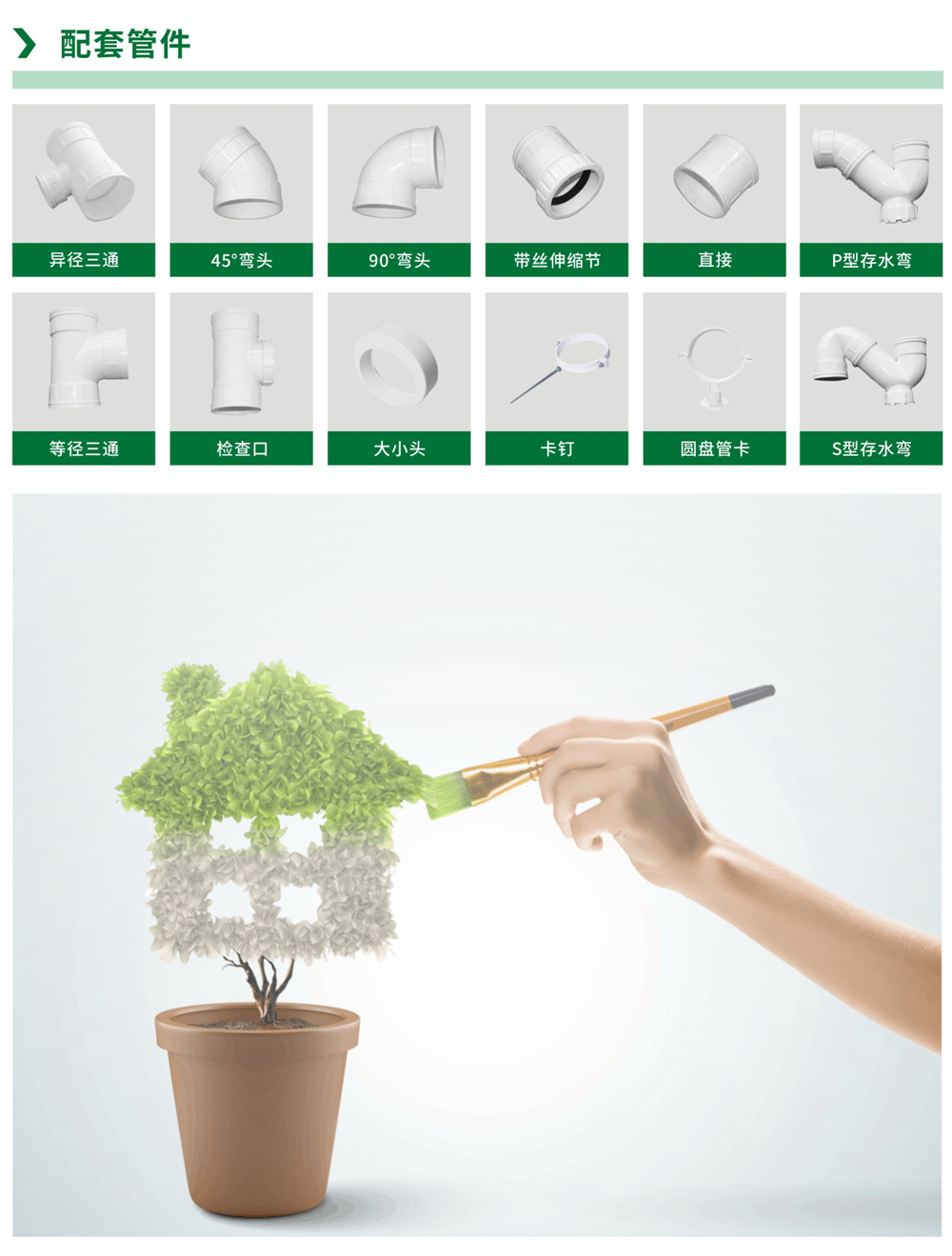 生產(chǎn)標準:GB/T5836.1-2006(管材) GB/T5836.2-2006(管件)