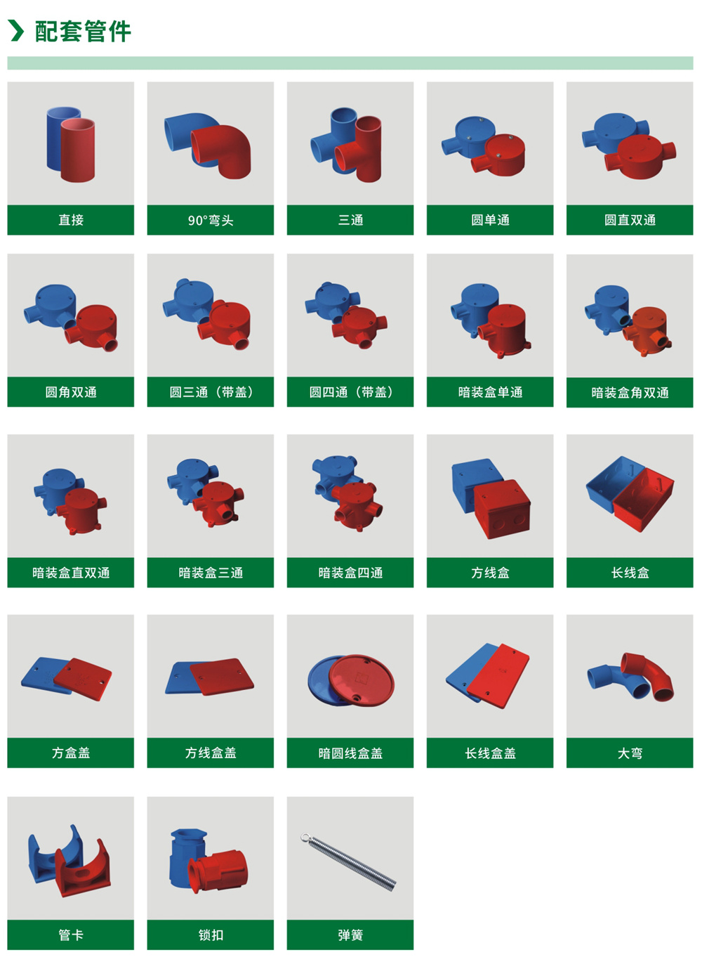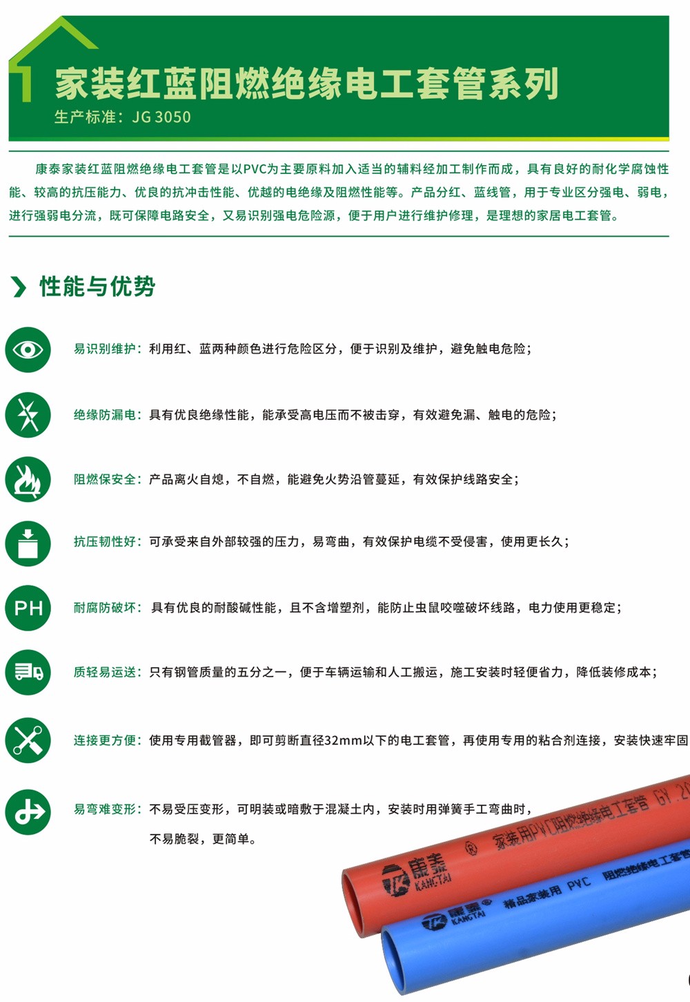 家裝紅藍(lán)阻燃絕緣電工套管系列: